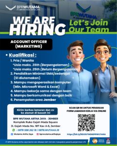 BPR Wutama sedang membuka lowongan pekerjaan sebagai Account Officer / Marketing, dengan kualifikasi sebagai berikut